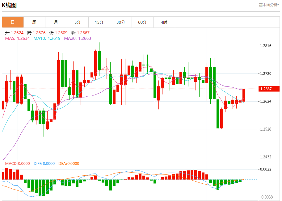 周二欧市盘中,英镑兑美元交投于1.2668,涨幅为0.31%。