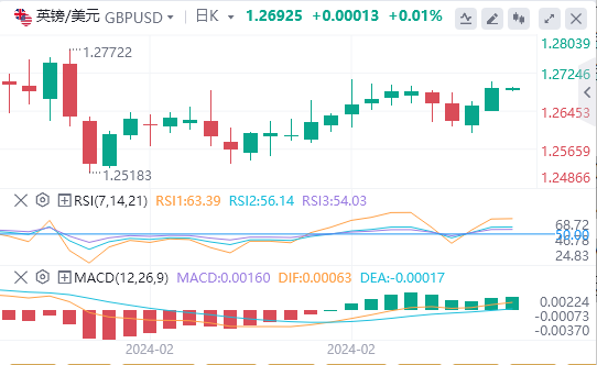 英镑/美元徘徊于1.26925附近。