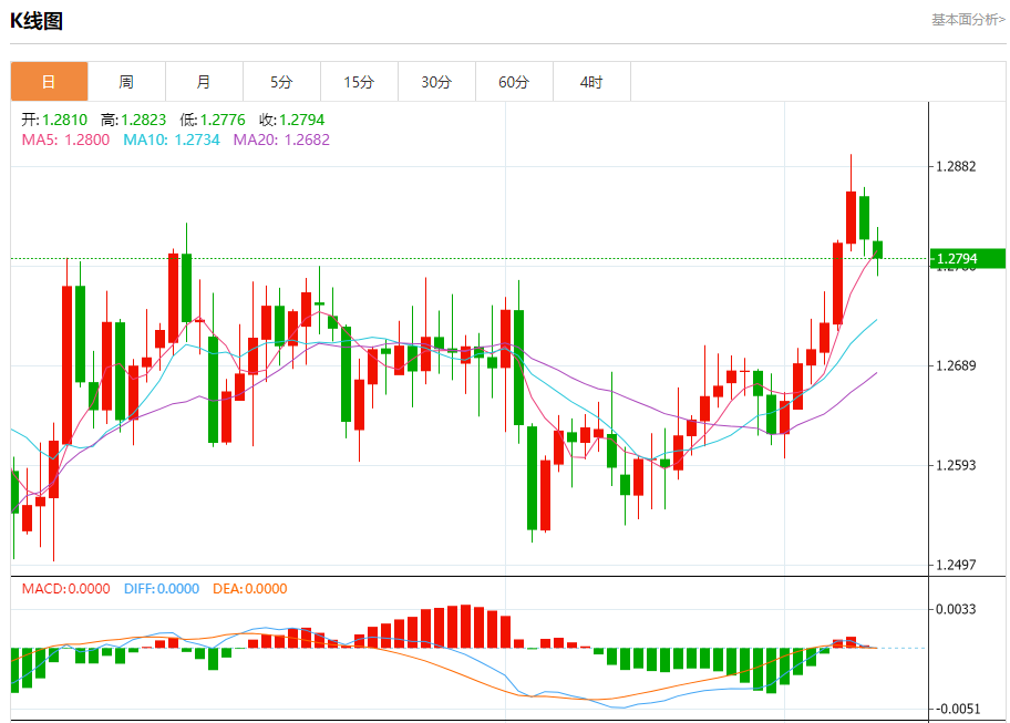 周二欧市盘中,英镑兑美元交投于1.2794,跌幅为0.15%。