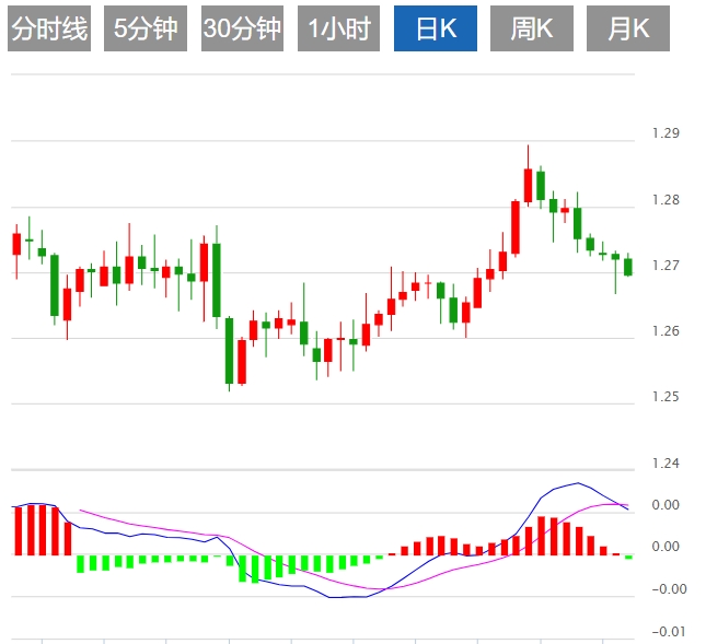 近期阻力位于 1.2710(斐波纳契 50%回调位),然后是 1.2730(100 期均线,下降趋势线)和 1.2750(斐波纳契 38.2%回调位)。