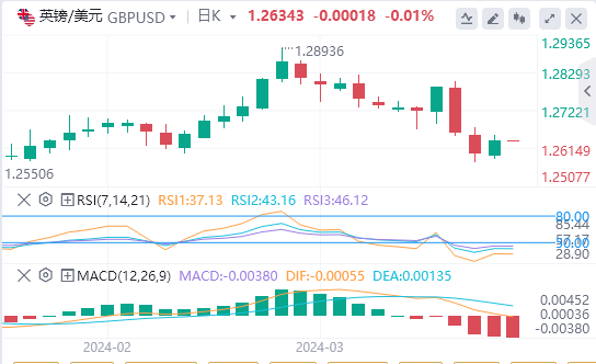 3月26日,周二亚市盘中,英镑/美元徘徊在1.2634附近。