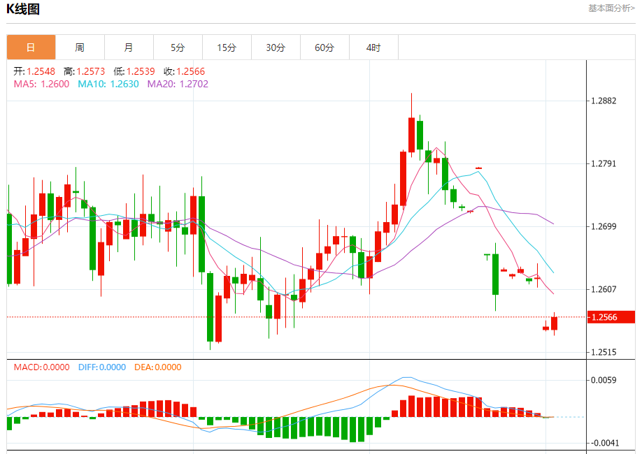 周二欧市盘中,英镑兑美元交投于1.2567,涨幅为0.12%。