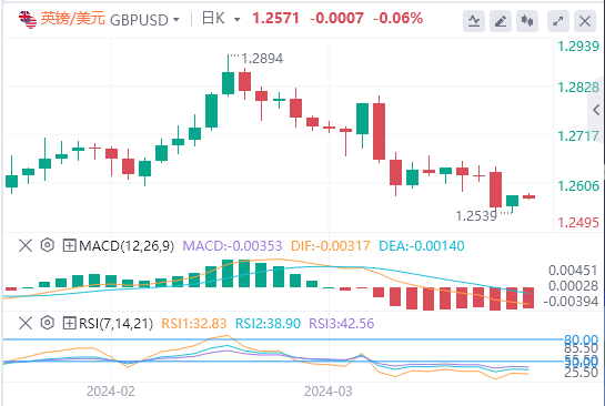 4月3日,周三亚市早盘,尽管美元在周三下跌,但英镑/美元处在1.2571附近,维持温和看跌倾向。英国通胀放缓和市场情绪低迷,英镑/美元仍维持弱势。交易者将密切关注周三美联储官员讲话,因为这可能会提供一些有关利率路径和政策前景的暗示。