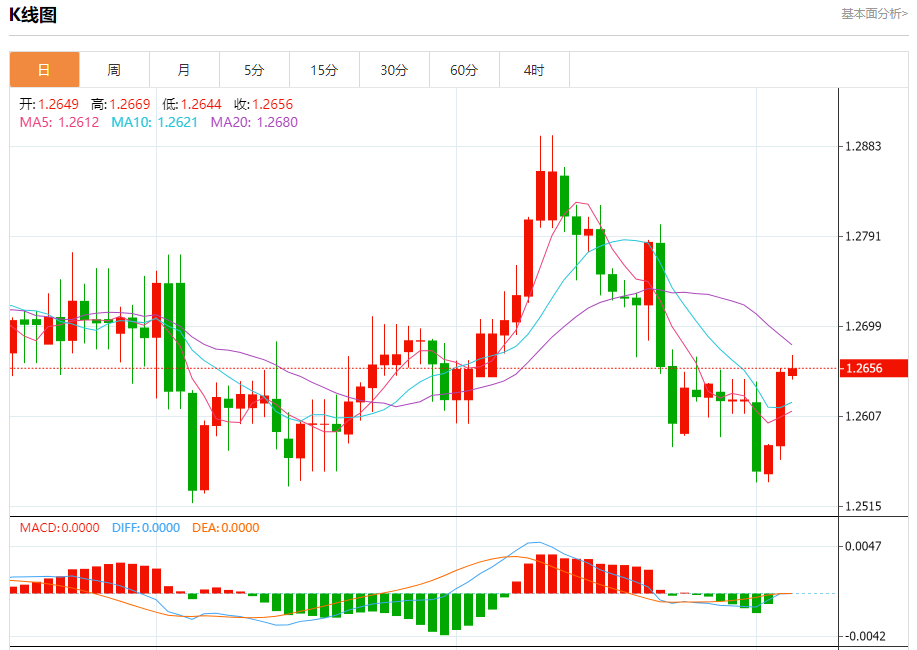 周四欧市盘中,英镑兑美元交投于1.2657,涨幅为0.03%。