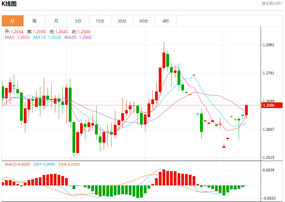 周二欧市盘中,英镑兑美元交投于1.2687,涨幅为0.25%。