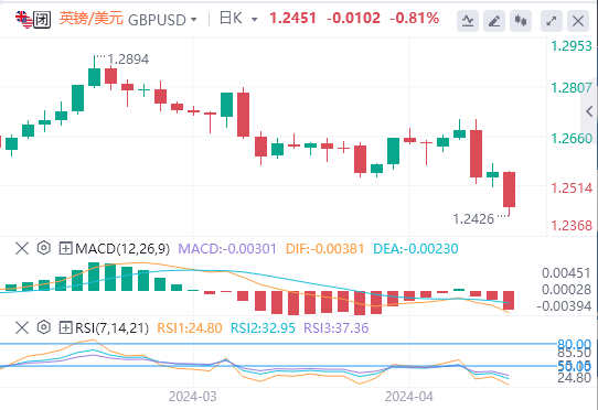 本周英镑/美元继续下跌,使英镑/美元对跌至1.2500以下的四个月来最低水平。