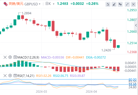 支撑位:1.2425 1.2400 1.2375