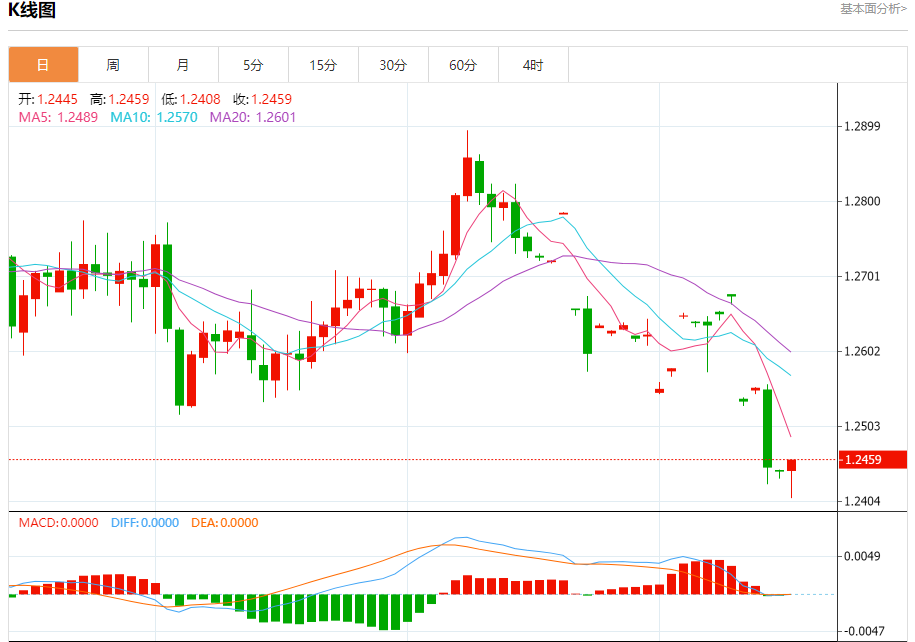 周二欧市盘中,英镑兑美元交投于1.2459,涨幅为0.10%。