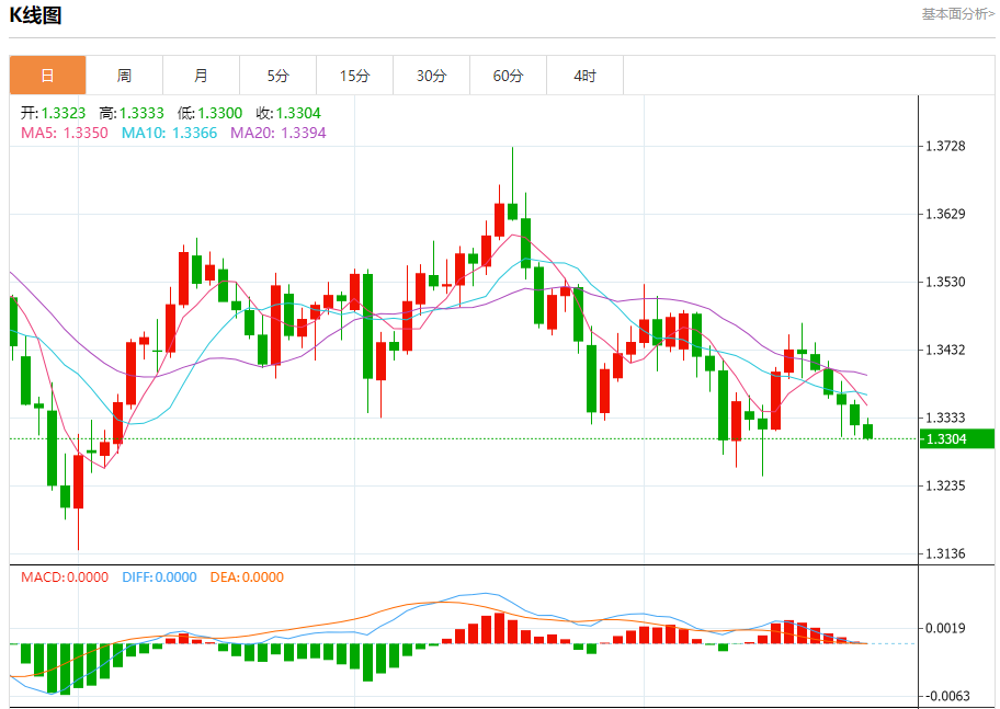 周四欧市盘中,英镑兑美元交投于1.3339,跌幅为0.12%。