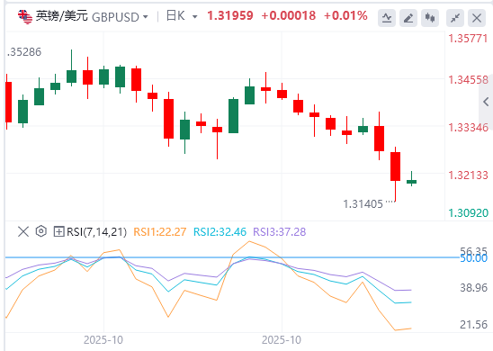 英镑兑美元在前一天重新触及近六个月低点1.3140附近后,周四暂时上涨。在美联储(Fed)决定将利率下调25个基点(bps)至3.75%-4.00%后,英镑周三大幅下跌。