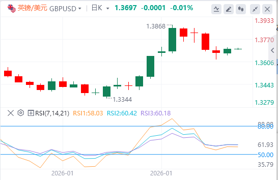 英镑周二对美元在狭窄区间内交易,小幅上涨至1.3700附近,市场在英格兰银行(BoE)2026年首次政策决策前采取谨慎态度。英镑兑美元收盘价为1.3665,盘中高点接近1.3707,随后汇合并低于1月底的多年高点1.3869。