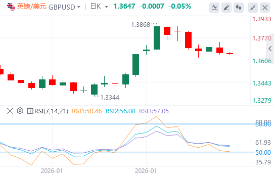 2月5日,周四亚市盘中,英镑/美元徘徊在1.3647附近。