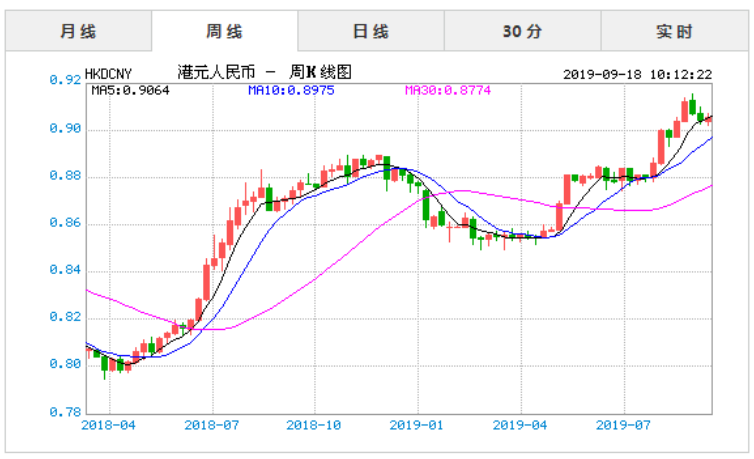 今日港币对人民币汇率实时行情一览表(2019年9月18日)