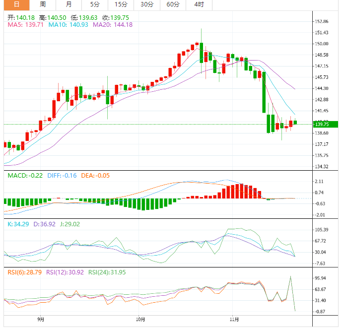 今天的预期交易区间在138.90支撑位和140.50阻力位之间。
