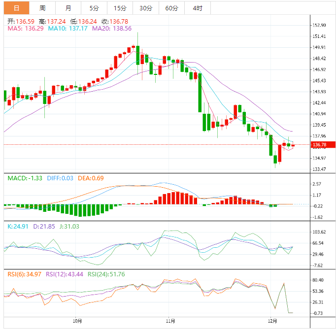 今天的预期交易区间在136.00支撑位和137.80阻力位之间。