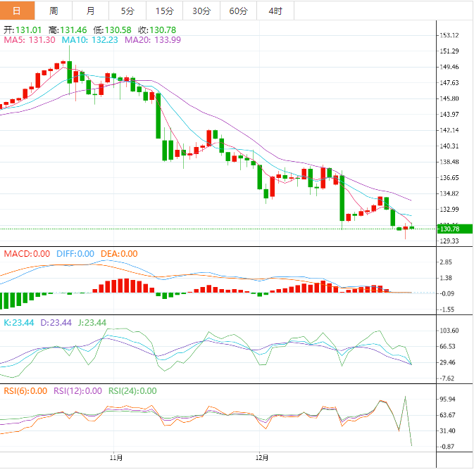 因此,美元兑日元的第一个阻力位将是132.00。若突破后者,则会出现12月30日的日高点133.09,随后是20日均线133.76。