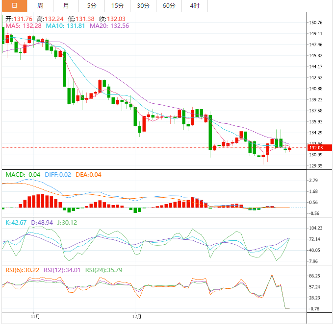 周二盘中,美元兑日元上涨至132.04,涨幅0.11%。