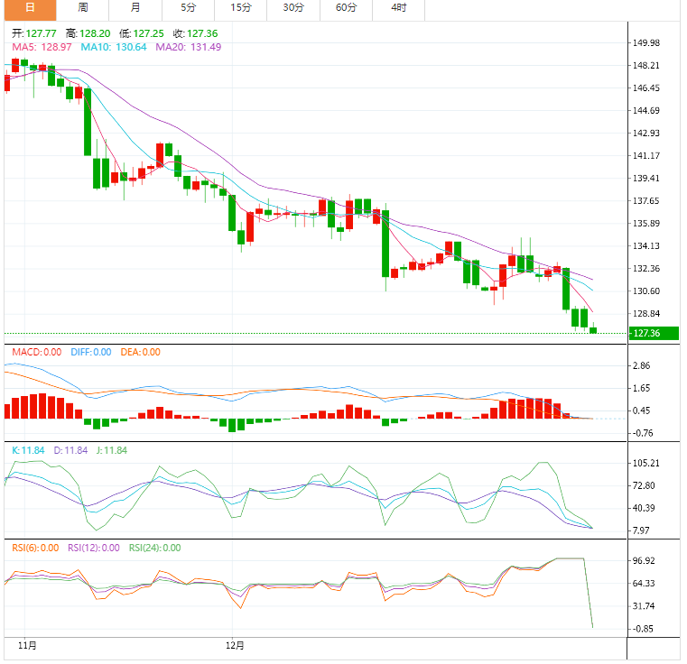 美元兑日元货币对继续走低,目标位于126.50。然而,每天的m型形成可能会支撑空头,并吸引买入价提前逼近129.50。