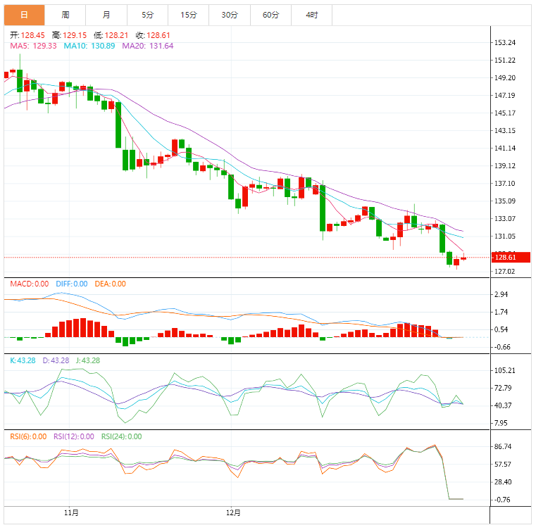 100移动均线低于200移动均线,确认阻力最小的路径是下行,或者抛售更有可能恢复而不是逆转。更高的回调仍可能达到132.00附近的61.8%的斐波那契水平。