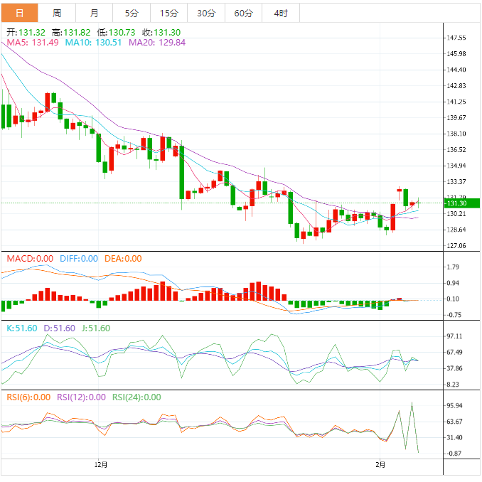 今天的预期交易区间在130.40支撑位和132.00阻力位之间。