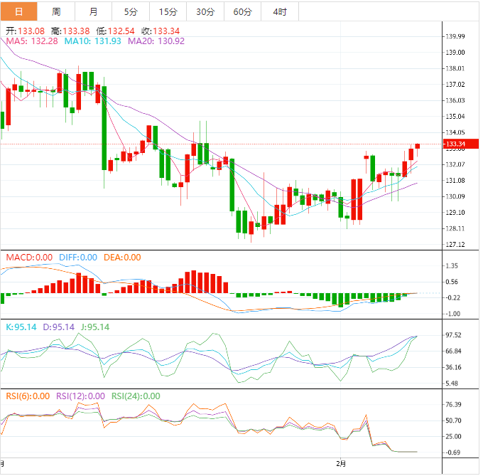 今天的预期交易区间在131.90支撑位和133.70阻力位之间。