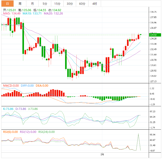 截至发稿时,日收盘价超过100日指数移动均线(EMA)约134.75,将引导美元/日元买家走向2022年12月中旬附近的138.20顶部。