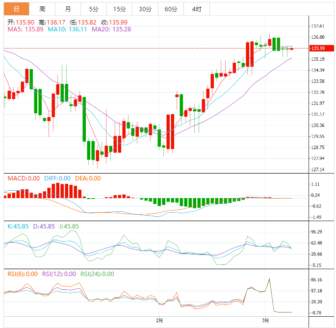 周二亚洲时段,美元兑日元在周一的交易中小幅上扬。美国经济日历清淡,美联储主席杰罗姆·鲍威尔将在美国国会作证,这可能会使美元兑美元保持在熟悉的水平。截止目前,美元/日元在周一触及周低点135.36后,在135.91交手。
