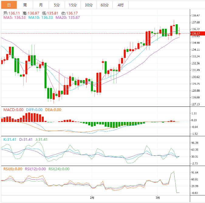 在日本央行发布重要消息之前,美元兑日元继续在136.00附近低迷,延续了前一天的跌势,原因是美元普遍走软,美国国债收益率下跌。