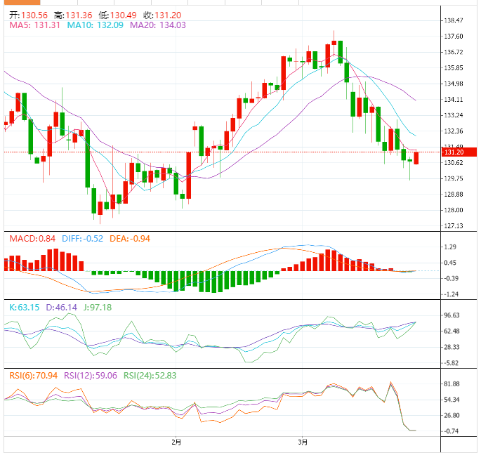 ÖÜÒ»ÅÌÖУ¬ÃÀÔª¶ÒÈÕÔªÉÏÕÇÖÁ131.22£¬ÕÇ·ù0.37%¡£