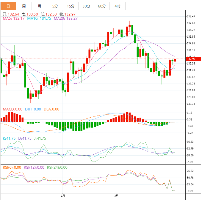 周五亚洲时段,美元/日元上涨了0.5%,目前已经达到了133.36的高点。