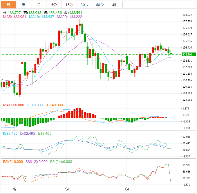 周三盘中,美元兑日元已经从周二133.40附近的抛售低点回升,目前在133.70附近交易,目前在133.62和133.91之间波动,在133.91遇到了一个潜在的稳固阻力位。