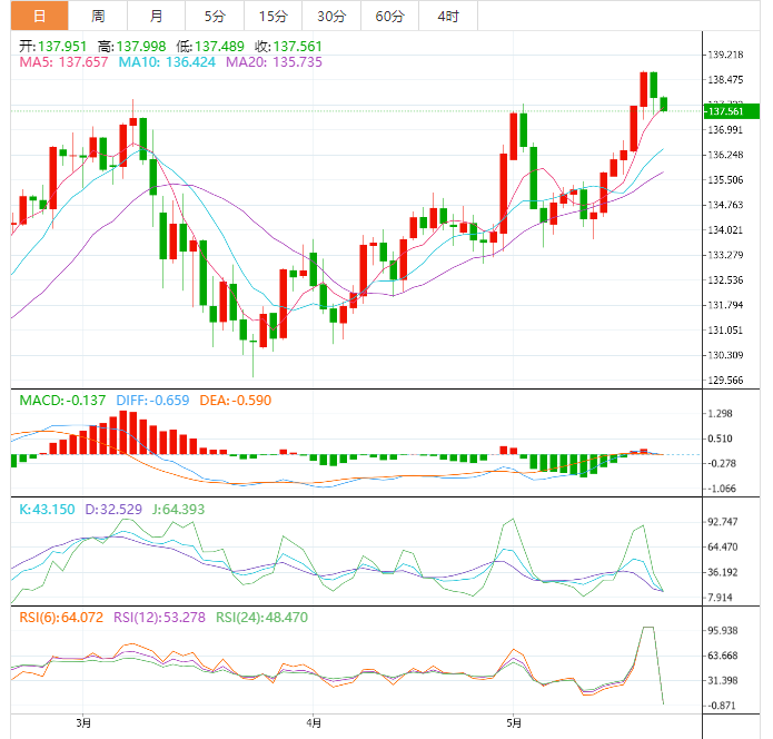 周一亚洲时段,美元兑日元已经回落至关键支撑位137.50附近。由于美国推迟提高债务上限正在全球市场制造混乱,预计汇价将在上述支撑位下方带来更多损失。