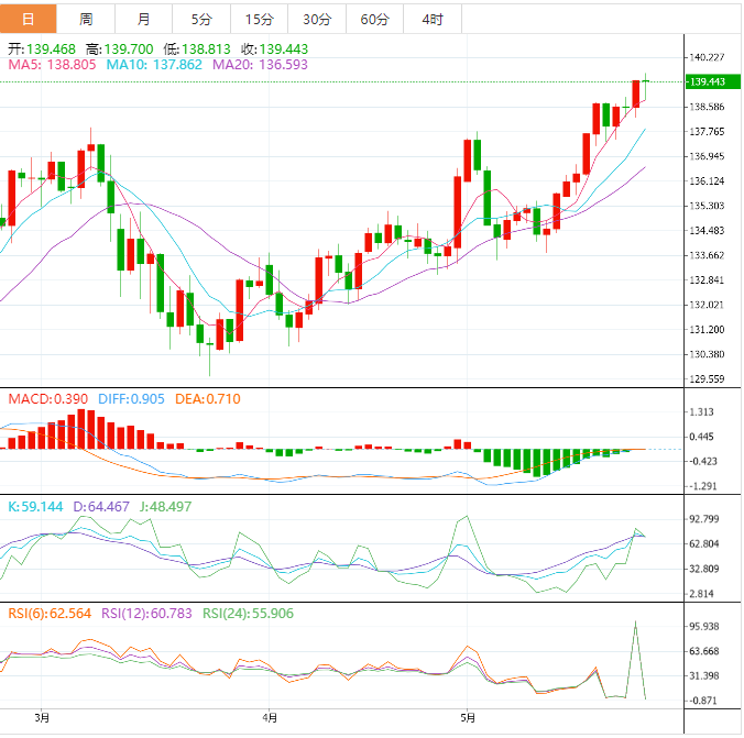 预计今天的交易区间在138.90支撑位和140.50阻力位之间。