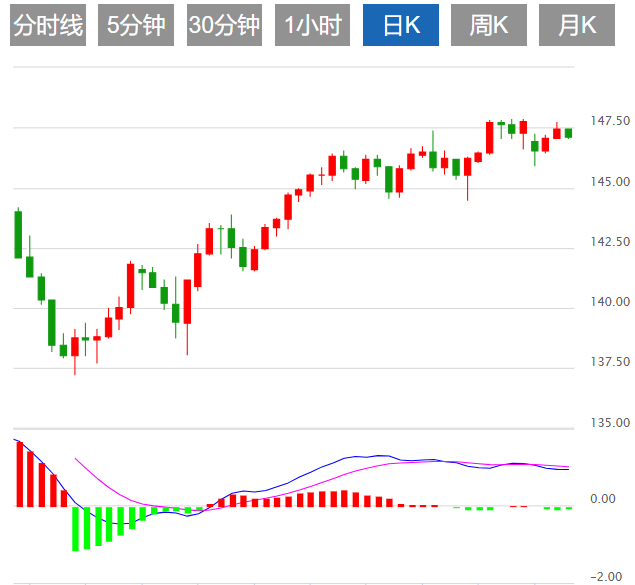 周四亚市早盘,美元/日元失去动能,跌破147.00水平。 美元走软打压美元/日元走低,目前美元/日元交投于147.12附近,日内跌幅为0.23%。