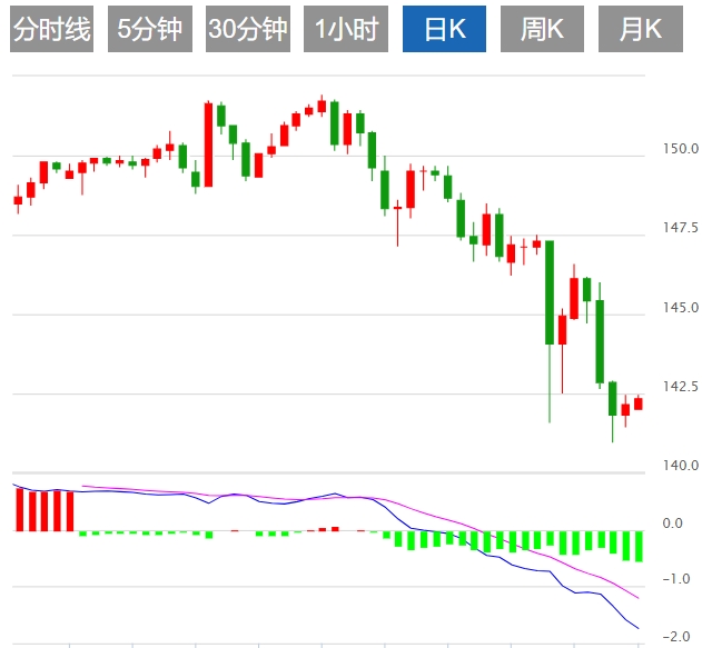 美元/日元在上周三出现艰难的再平衡,将该货币对拖回141.00关口,然后美元趋于平稳,在上周收盘时略高于142.00的价格点。该货币对本周从高峰到低谷下跌了3.85%,美元的下跌和小幅反弹使美元/日元的交易价格远低于200小时简单移动平均线(SMA),跌破145.00主要关口。