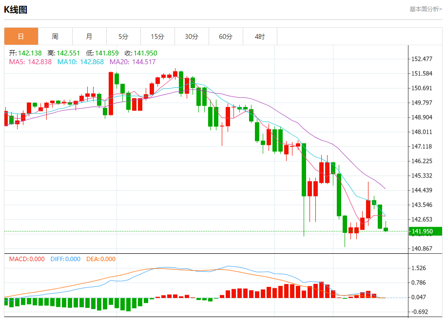 周五纽盘,美元兑日元交投于141.962,跌幅为0.11%。