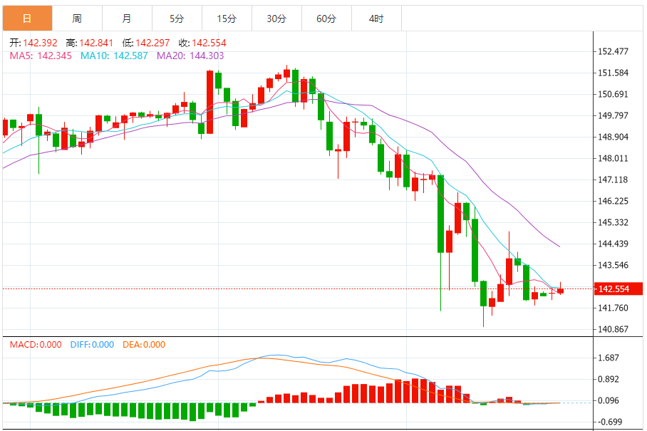 今日周三,截止目前美元兑日元报142.576,上涨0.12%。