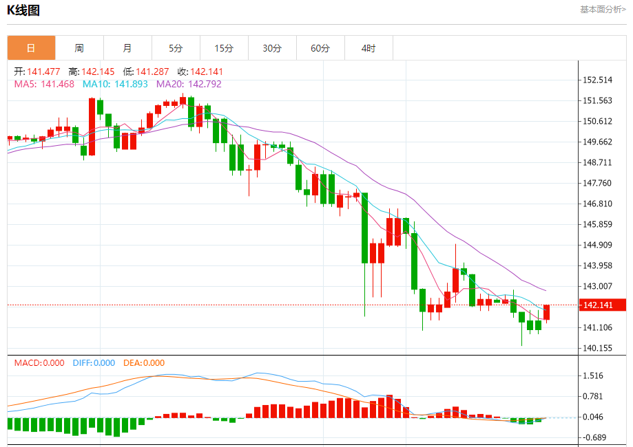 周二纽盘,美元兑日元交投于142.138,涨幅为0.79%。