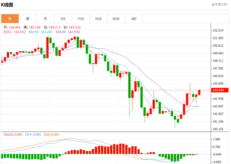 今天的预期交易区间:在144.20支撑和145.70阻力之间