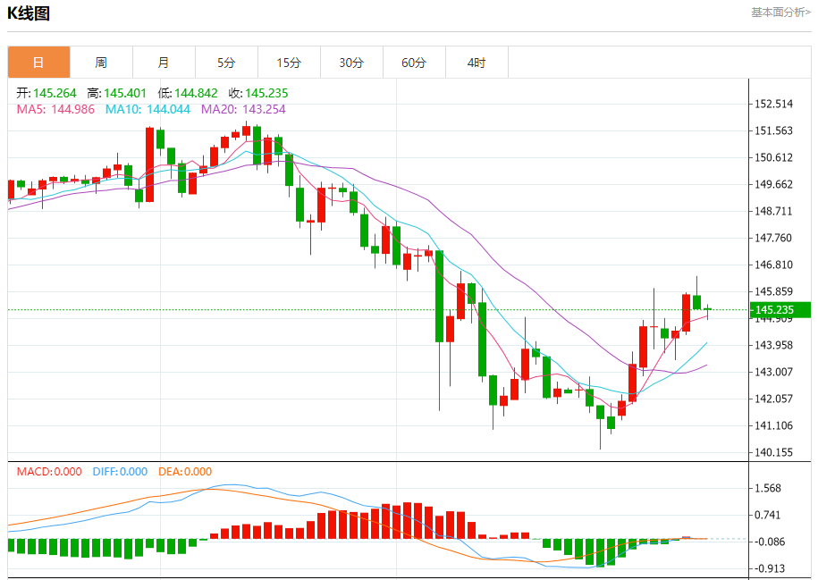 今天的预期交易区间在144.00支撑和145.50阻力之间