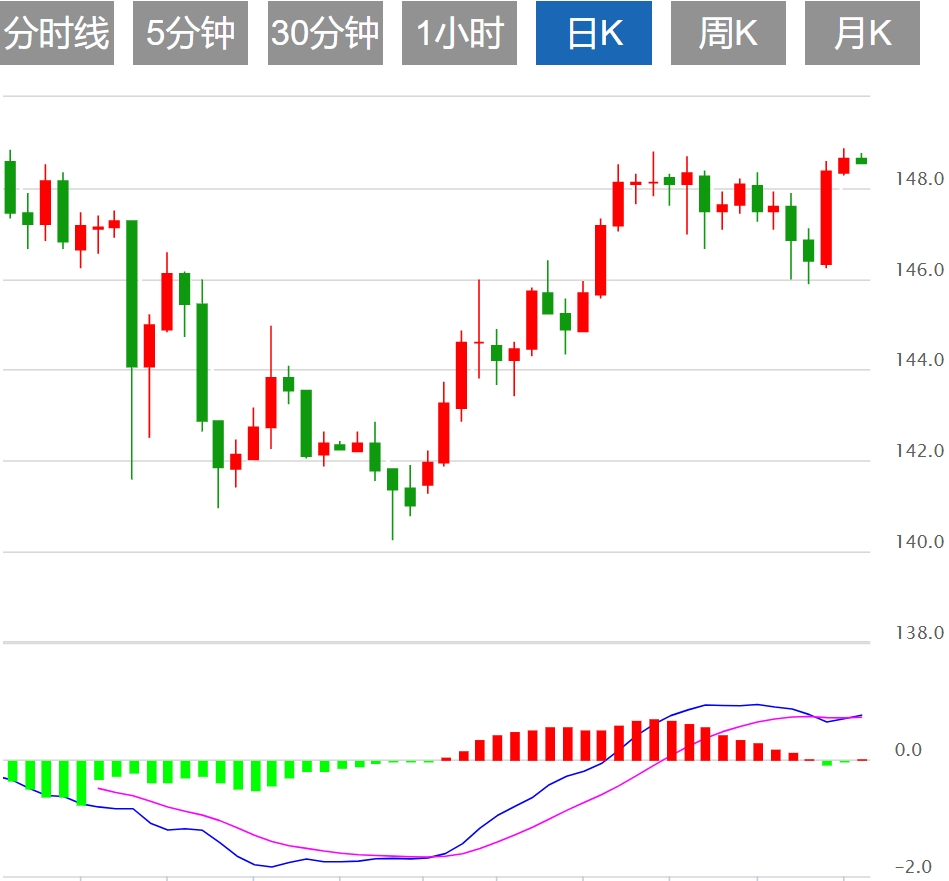 周二亚盘,美元/日元走低,现报148.52,下跌0.09%。基于美联储官员评论及美国经济展现韧性,CME FedWatch目前显示完全消化降息的时间为6月。