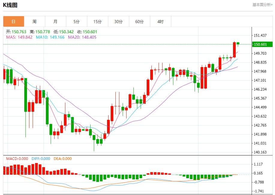 今日周三,截止目前美元兑日元报150.611,下跌0.11%。