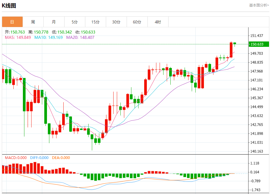 今天的预期交易范围在150.00支撑位和151.50阻力位之间