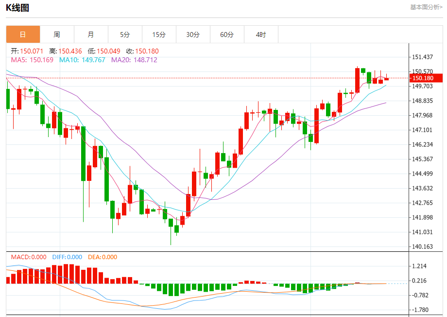 周二纽盘,美元兑日元交投于150.191,涨幅为0.06%。