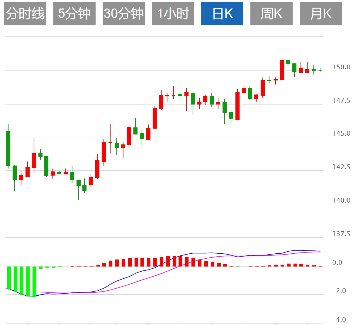 周三欧盘,美元/日元尝试录得一条阳线,继续区间交易并守住2023年12月28日的上升趋势线。 汇价仍位于2023年10月3日高点150.15,该位似乎引起了日本官员的口头干预。
