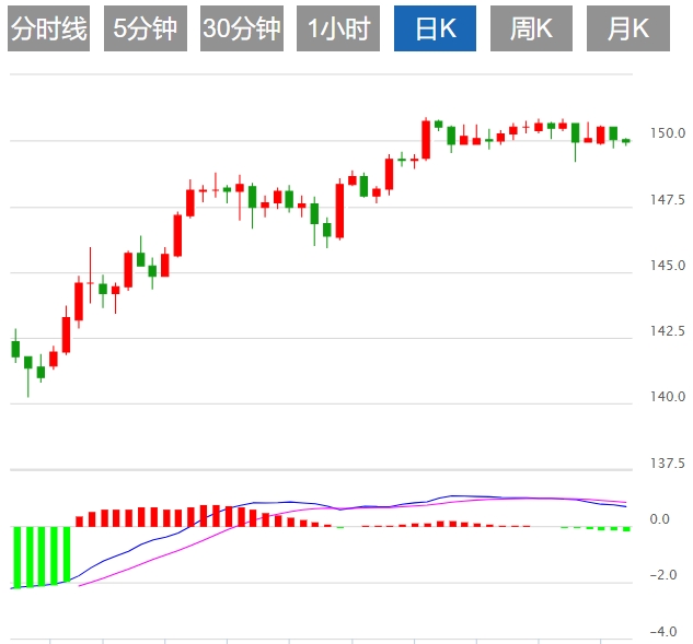 今日预期交易区间在149.20支撑位和150.80阻力位之间