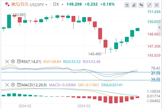 美元/日元上周五上涨0.47%。继周四上涨0.37%之后,美元/日元收于148.994。美元/日元跌至148.031的低点,随后升至周五盘中高点149.163。