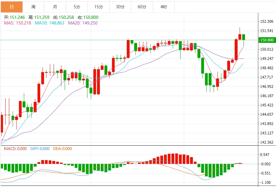 今天的预期交易区间在149.60支撑位和151.00阻力位之间