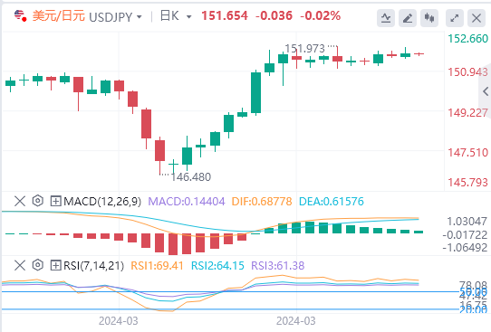 4月4日,周四亚市早盘,日元走高,并希望在前一天从数十年低点附近温和反弹的基础上再接再厉。日本当局日益增长的干预威胁继续为本国货币提供一些支撑。除此之外,隔夜美元跌至近一周低点,进一步推动美元/日元在152.00整数关口附近。