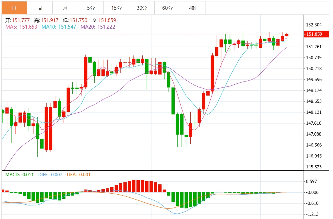 建议寻求该货币对近期前景指导的交易者密切关注152.00的阻力位和150.90的支撑位。如果出现看涨突破,可能会向短期上升通道上限155.25反弹,这取决于东京不干预外汇市场以提振日元。